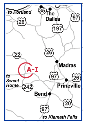 Ikenick 3.5 miles south of US 20 on ORE 126. Willamette National Forest. |